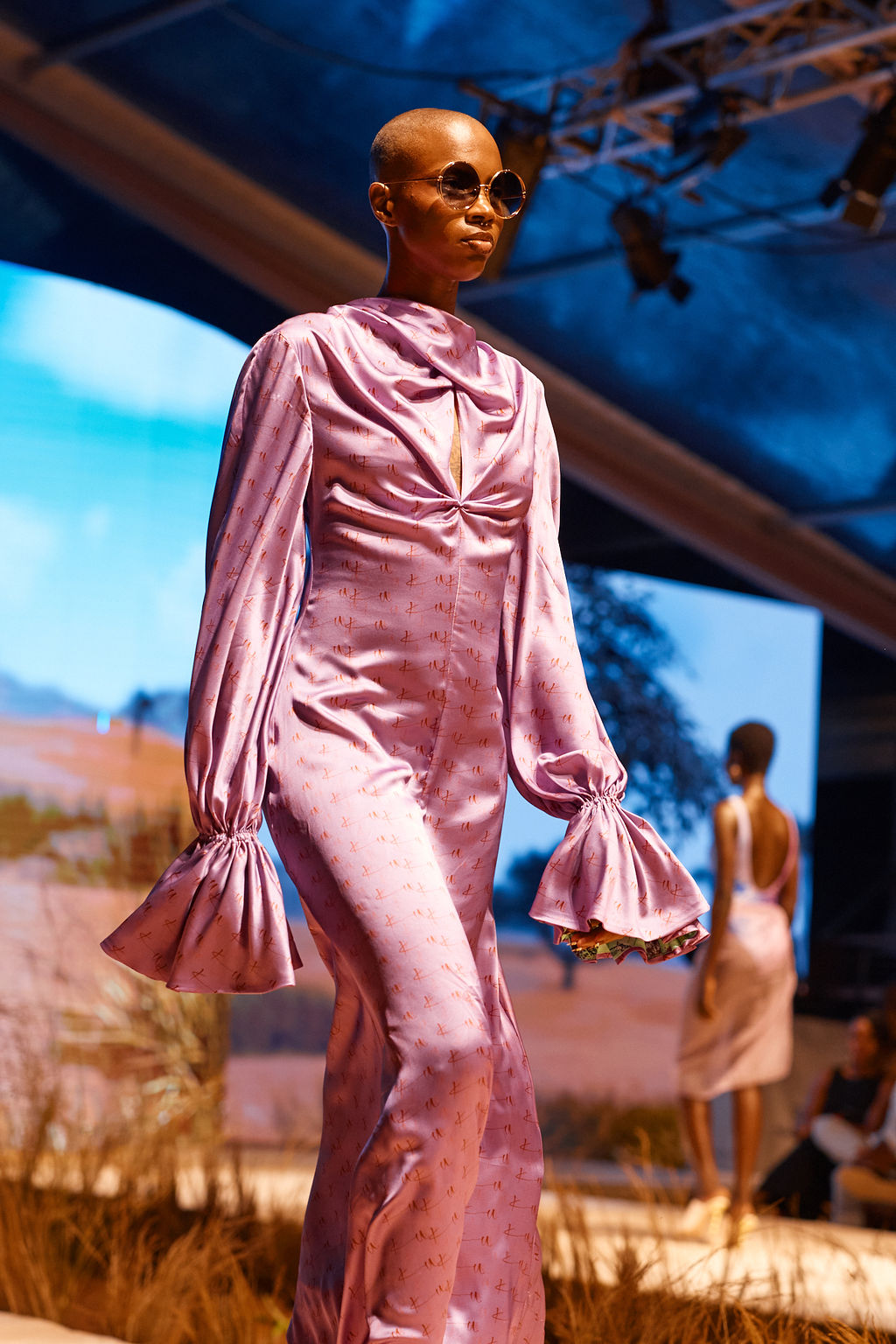 Purple Monogram Tie Neck Puff Sleeve Dress