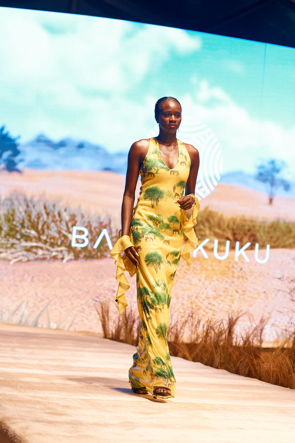 Yellow Zebra Scene Ruffle Sequin Dress