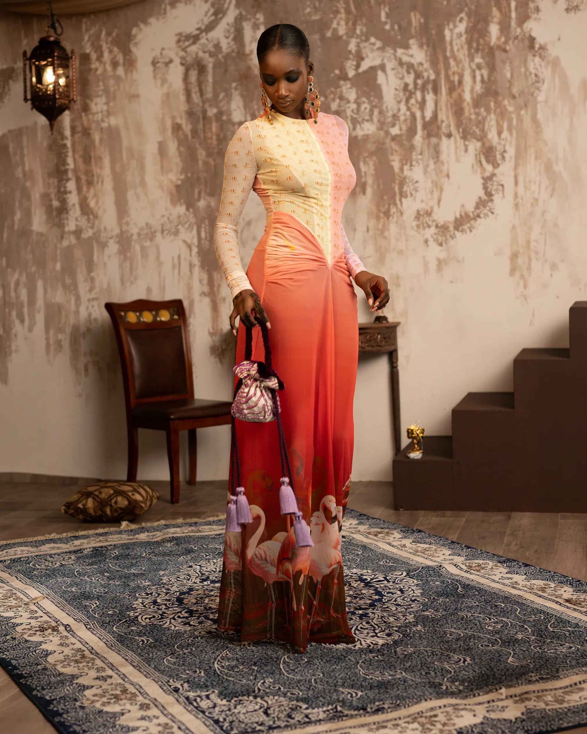 Mixed Print Zip Up Pleated Mesh Dress - Savannah