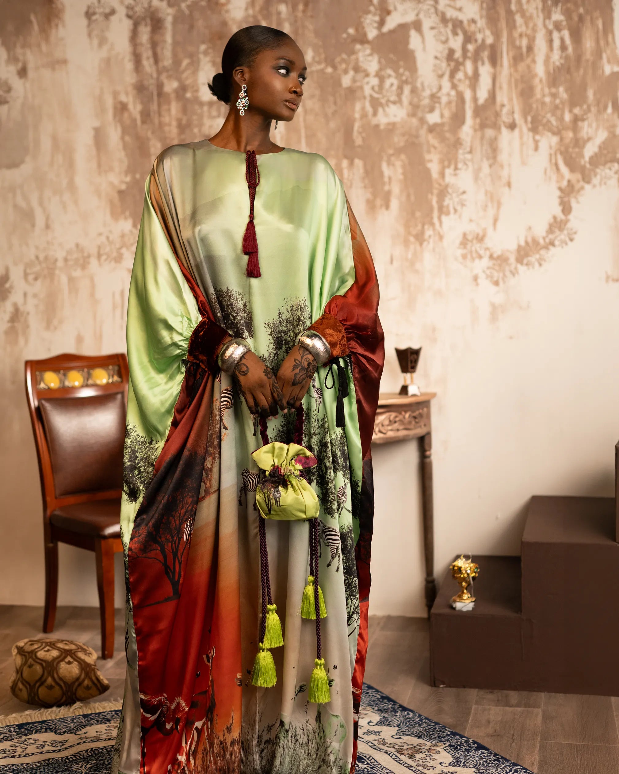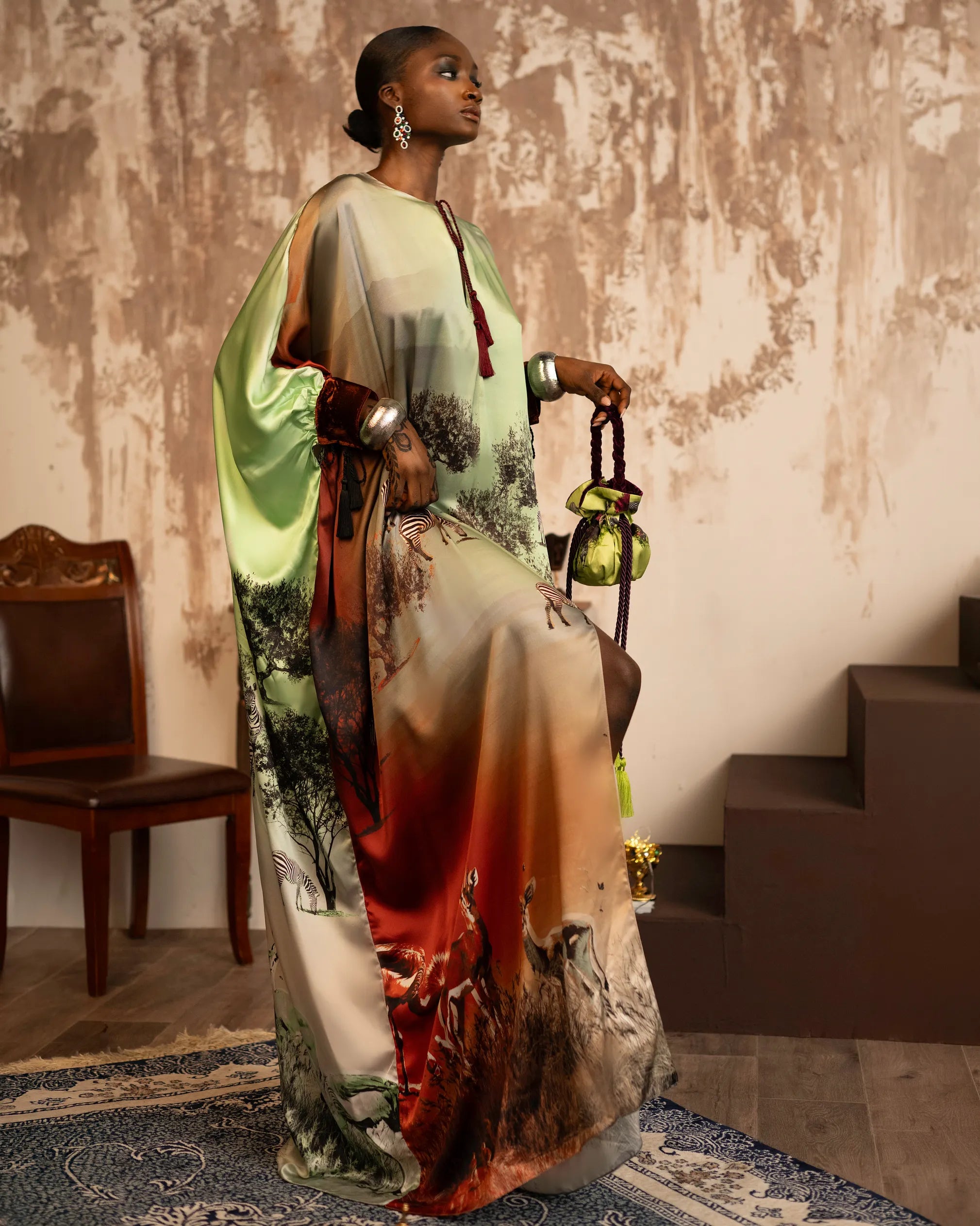 Green Red Savannah Scene Classic Kaftan